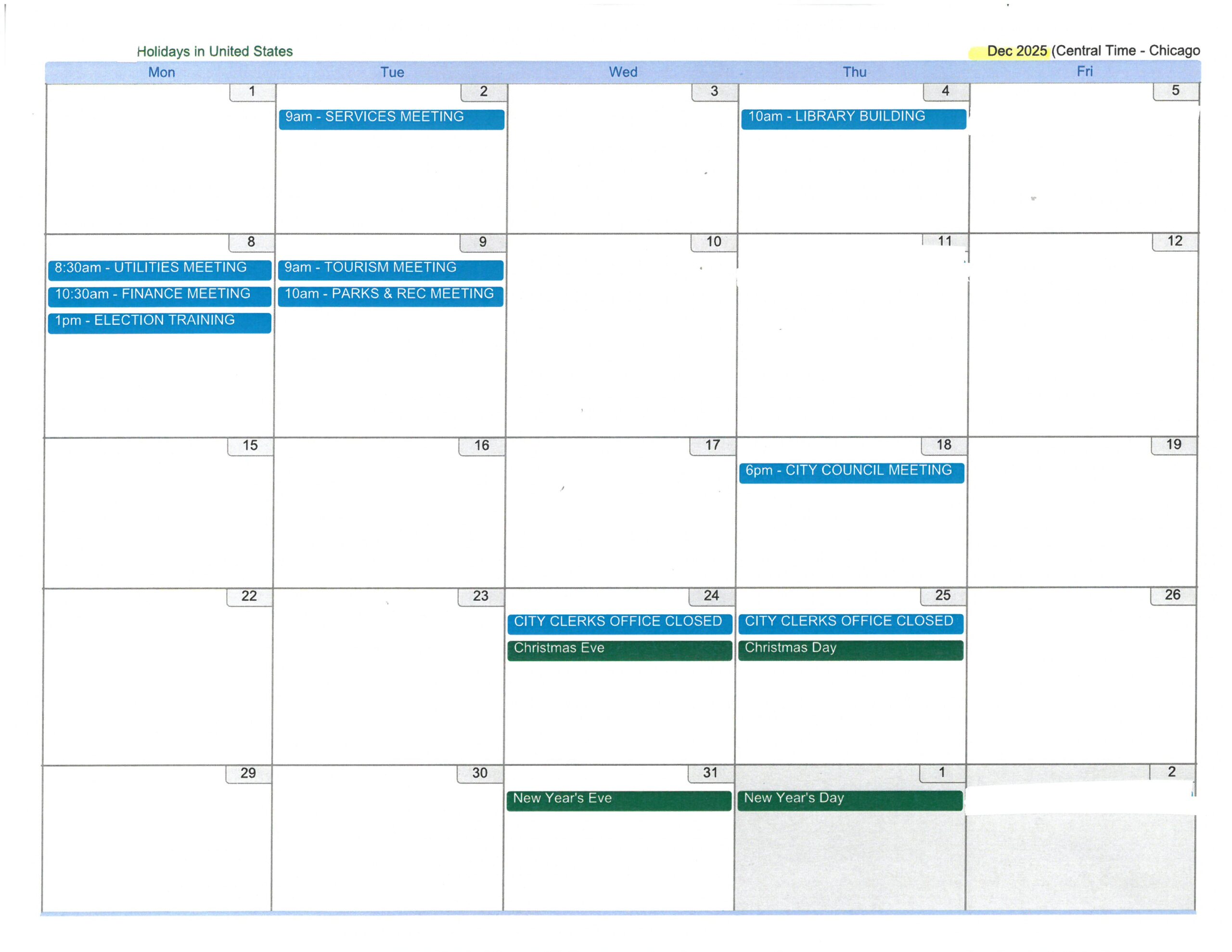 The next regular Council meeting will be Thursday, December 18, 2025 at 6:00 p.m.