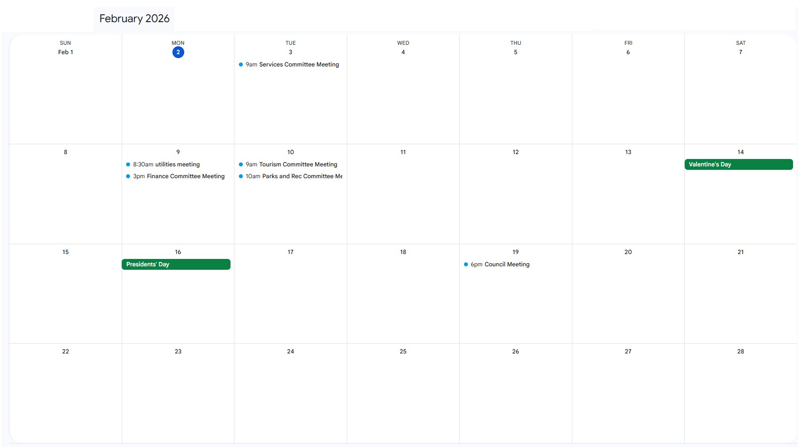 The next regular Council meeting will be Thursday, February 19, 2026 at 6:00 p.m.
