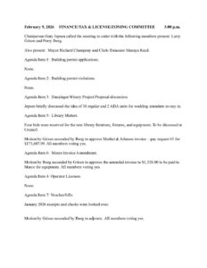Finance Feb 9 2026 minutes